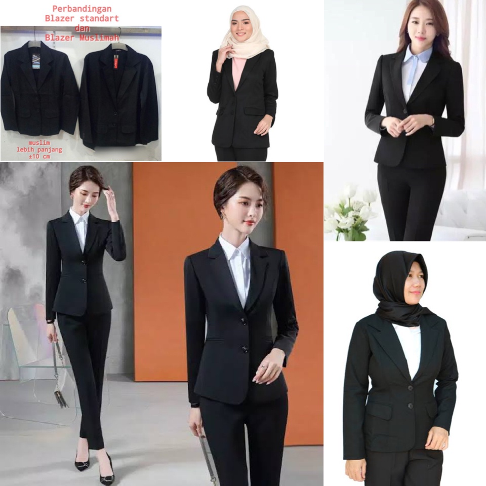 Jual Baju Blazer Wanita Kerja Kantor Wanita Cewek Hitam Black Panjang Muslimah Cantik Murah Guru Formal Indonesia Shopee Indonesia