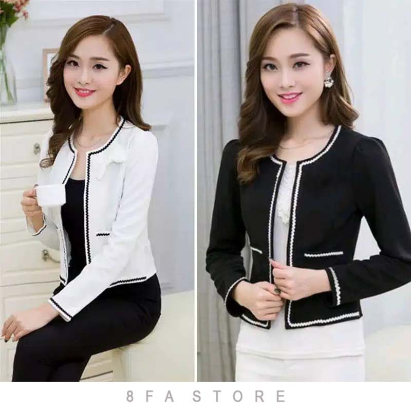 Jual 8fa Baju Blazer Formal Wanita Hitam Putih Gaya Korea Model Jahit Renrda Kekinian Fa770 Indonesia Shopee Indonesia